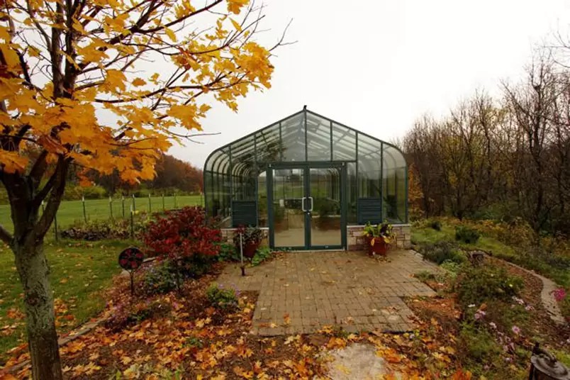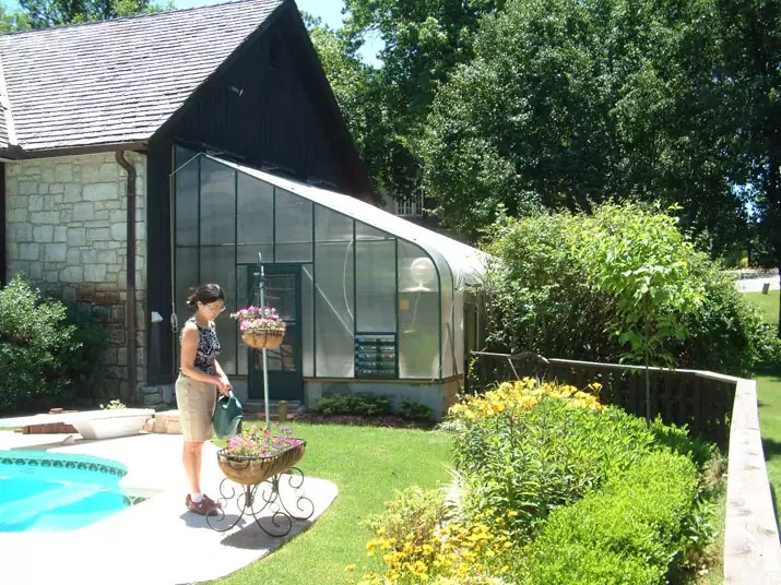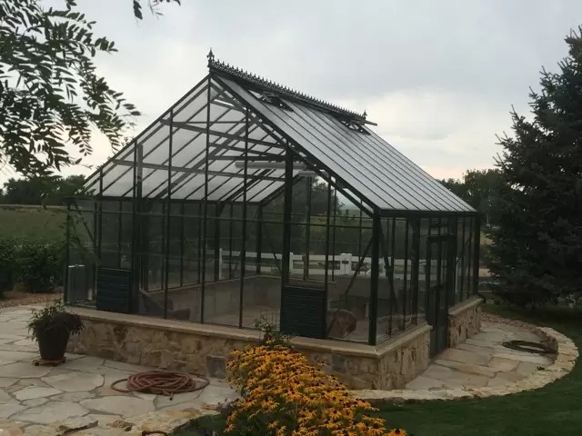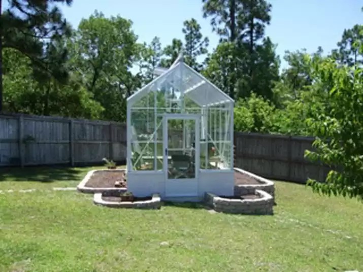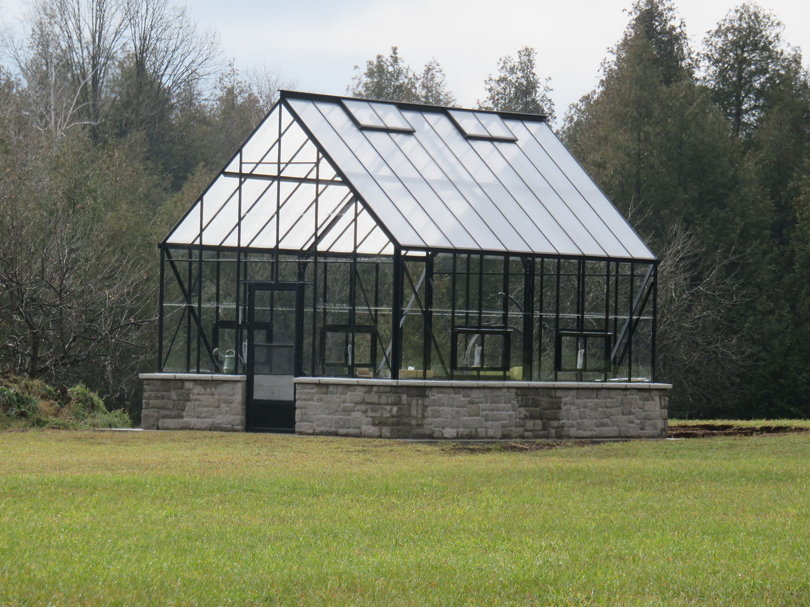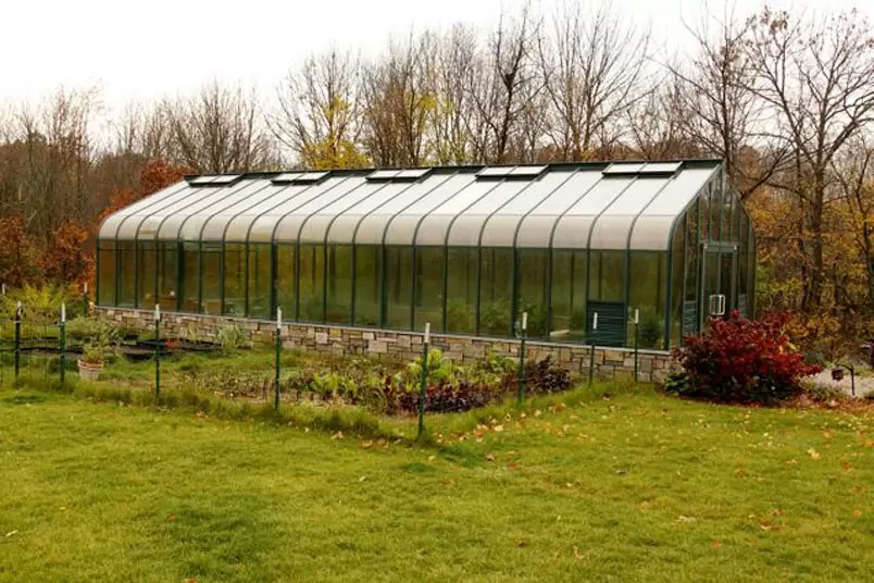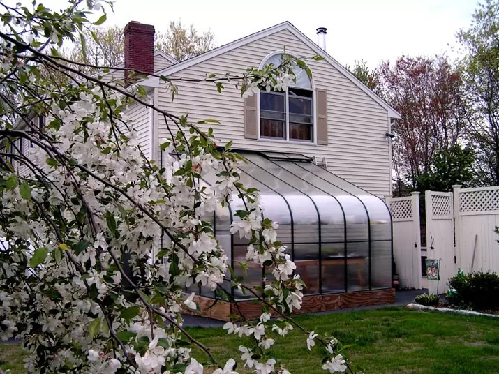 The unique style of a straight Cape Cod backyard greenhouse adds character to any landscape setting.