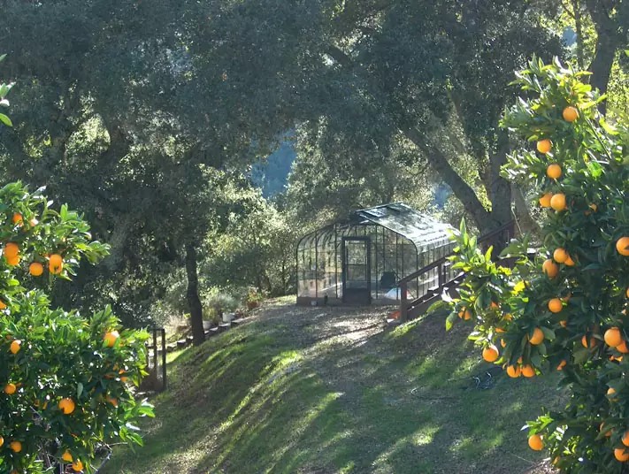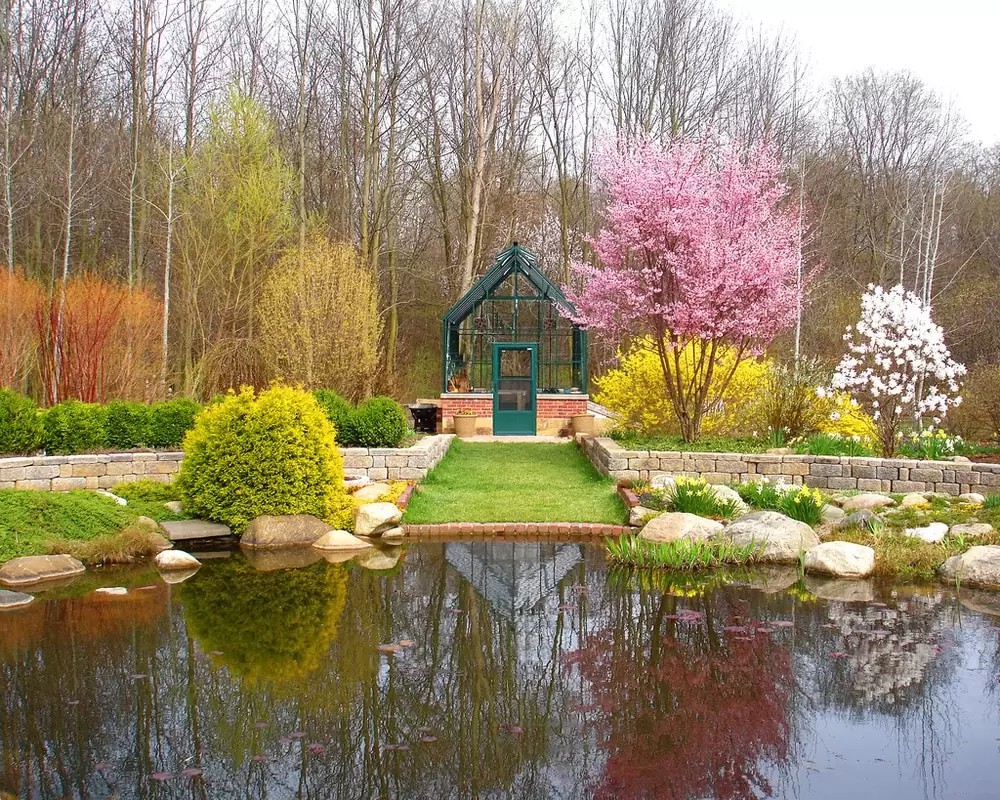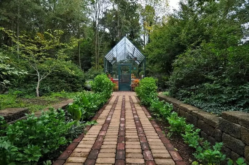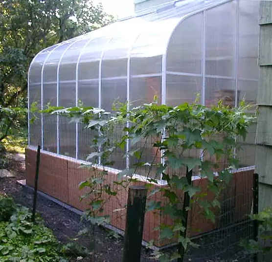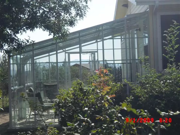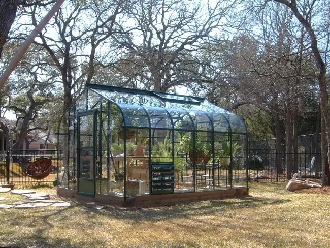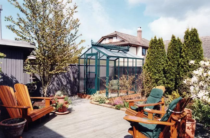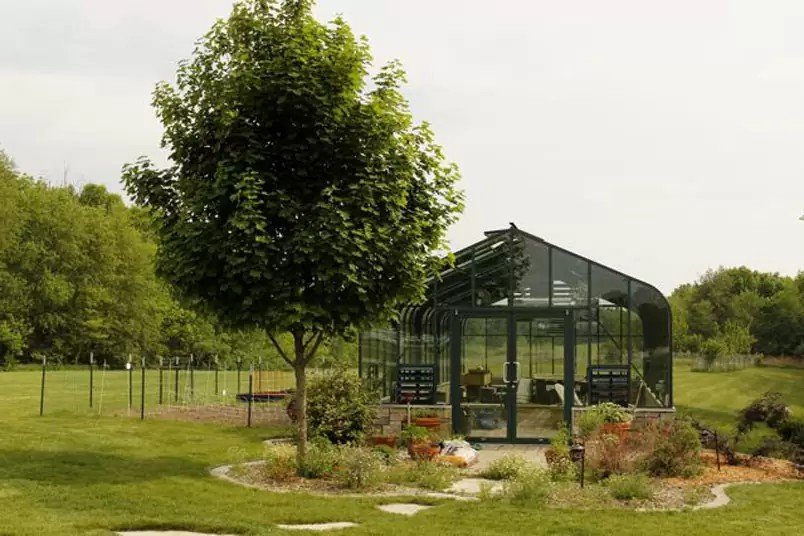 The unique style of a straight Cape Cod backyard greenhouse adds character to any landscape setting.